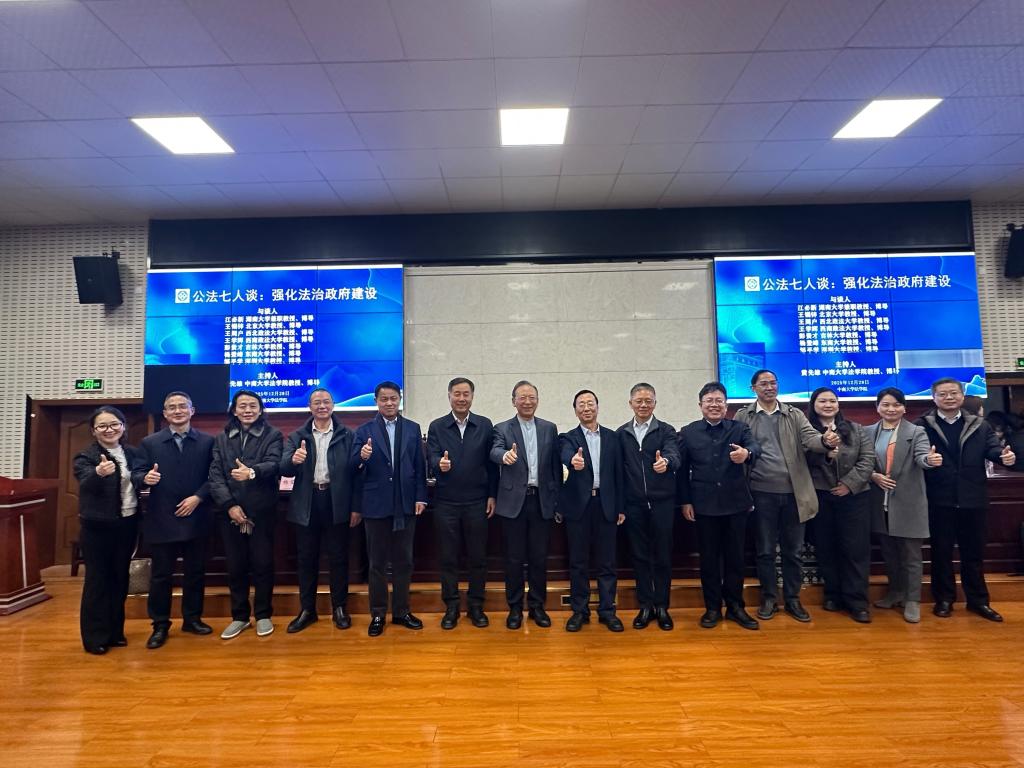 在三个多小时的研讨中,七位公法学者从多方位、多角度就如何强化法治政府建设阐述了各自的见解。其中,北京大学王锡锌教授从数字法治政府建设角度发表了主旨演讲,指出行政国向数字国的转向意味着国家治理的基础逻辑从传统科层权威转向数据驱动与算法决策。这不仅是工具革新,更是治理范式、组织形态与权力运行方式的深刻重塑,亟需新的法律原则与制度框架予以回应和规范。西北政法大学王周户教授围绕“强化法治政府建设”主题,从“是什么”“为什么”“怎么办”三个方面,阐述了法治政府建设的本质内涵、价值根基与实践路径等。西南政法大学王学辉教授以“中国式法治政府的构建”为核心,从理论形态、观念革新与实践自主性三个关键维度展开论述:首先探讨契合中华民族精神特质的法治政府应然样态;其次阐释中国式法治政府建设所需完成的观念更新;最后说明我国法治政府建设如何超越西方法治范式、走出一条自主性道路。吉林大学彭贵才教授从行政纠纷处理的实践样态出发,结合当下行政争议纠纷解决的实践情况,探讨了其对法治政府建设提出的必然要求与现实启示。东南大学杨登峰教授系统阐述了行政法中的职权法定原则及其与法律保留原则的区分和联系,剖析了其对法治政府建设的规范意义与制度要求。深圳大学邹平学教授围绕粤港澳大湾区法治实践,系统阐述了大湾区法治政府建设的战略意义、实践难点与制度协同路径,为跨法域治理提供了理论参照与实践启示。湖南大学江必新教授系统剖析了当前法治政府建设面临的制度供给、职能转变、决策理性、执法规范、争议化解、数字治理等十大难点,为“强化法治政府建设”提供了兼具问题导向与体系思维的实践路径与改革方向。