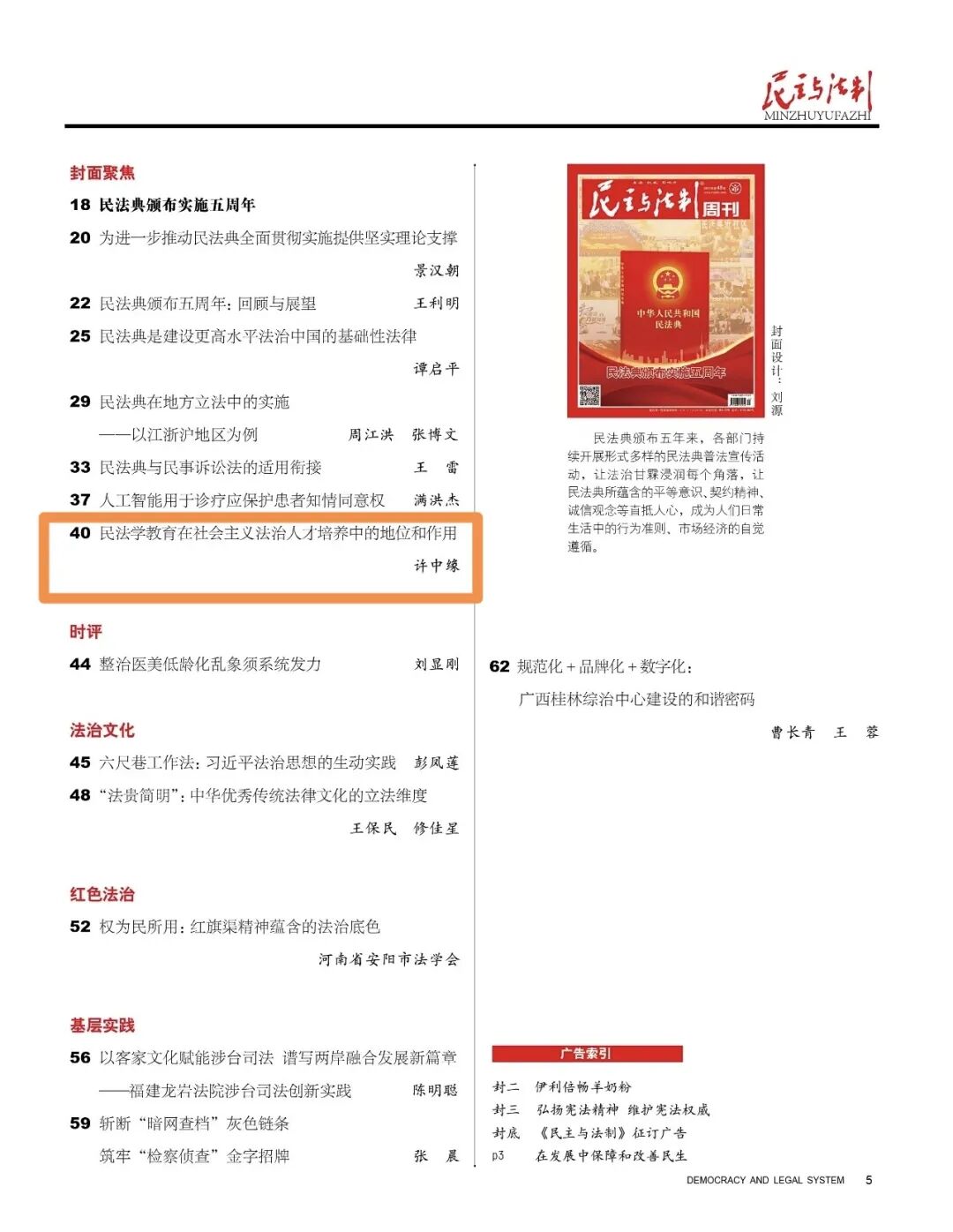 近日,许中缘教授《民法学教育在社会主义法治人才培养中的地位和作用》一文发表在CLSCI《民主与法制》2025年第45期。