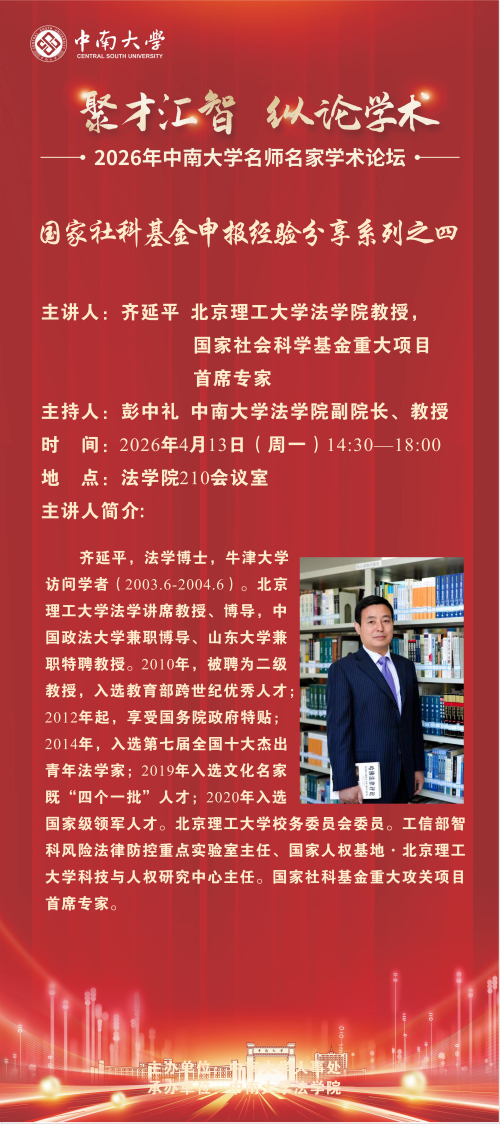 【讲座预告】齐延平:国家社科基金申报经验分享系列之四