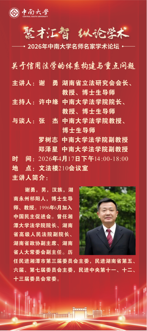 【讲座预告】谢勇:关于信用法学的体系构建与重点问题