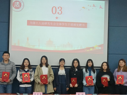 之后,李亚萍老师为第十八届研究生会全体学生干部颁发了聘书。