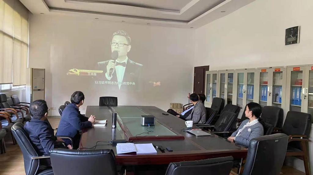 (图为yl23411永利集团党委委员观看《榜样5》)