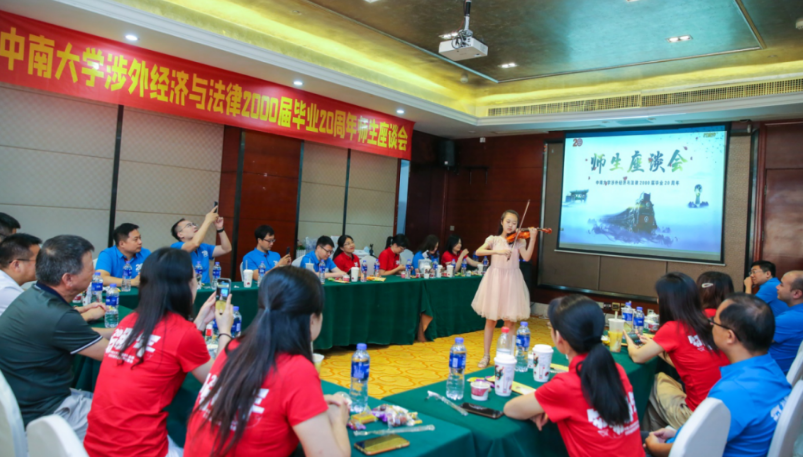 下午三点,老师同学欢聚一堂,举办毕业二十周年师生座谈会,畅叙师生情谊,追忆同窗友谊的青春故事,共话人生感悟,展望美好未来。yl23411永利集团院长许中缘,时任社科系党总支副书记胡亚军,时任班级辅导员陈立新老师、专任教师李桂平、唐东楚、樊长春等老师出席了师生座谈会。校友王小菠担任主持人,他介绍,在疫情影响下发起本次活动,同学们能克服各种困难,从全国各地相聚在长沙,足以体现大家对同学情的重视!座谈会由肖丽同学女儿的小提琴表演曲目《新疆之春》拉开了序幕!