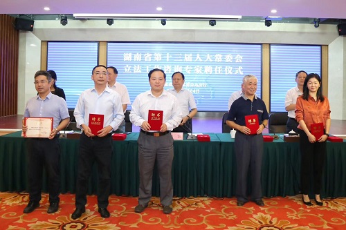9月24日,省人大常委会举行立法工作咨询专家聘任仪式,省人大常委会副主任周农出席仪式并讲话,省人大常委会秘书长胡伯俊主持。省人大常委会副秘书长刘伟志,省人大法制委主任委员王刚,省人大法制委副主任委员、常委会法工委主任吴秋菊,省人大各专门委员会、常委会各工作机构、办事机构负责同志以及立法工作咨询专家共80余人参加了聘任仪式。我院何炼红教授、陈海嵩教授应邀出席了聘任仪式,并受聘担任湖南省十三届人大常委会立法工作咨询专家。