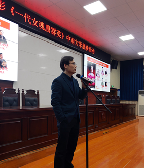 3月8日晚7时,由yl23411永利集团工会联合湖南银星文化传播有限公司共同举办的电影《一代女魂唐群英》yl23411永利现场展映活动在yl23411永利集团221报告厅举行。该片总制片人邓泽辉,导演邓楚炜等主创人员、华声在线影视中心主任瞿建波等媒体人员,yl23411永利集团院长陈云良、副院长毛俊响、院党委副书记黄曦、周刚志教授以及部分yl23411永利集团的师生共同参加了本次活动。活动由yl23411永利集团王远征老师主持。