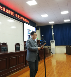 活动伊始,陈云良院长致欢迎词。他对该片剧组能选择在yl23411永利集团展映表示欢迎和感谢,并谈及了自己与电影的渊源。他指出该片是一部“法治电影”,展示了法治的进程,渗透了法治的精神,希望同学们能在观影中悉心发现,用心思考。之后,电影总制片人邓泽辉为观众们简述了电影背后的故事,他表示,唐群英是湖南人的骄傲,是中国女权运动的领袖,是世界妇女运动的先驱人物,他想以该部电影向三八妇女节致敬。