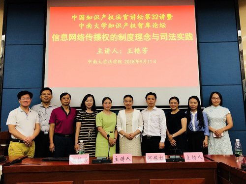 2018年9月11晚,最高人民法院知识产权庭王艳芳审判长做客中国知识产权法官讲坛第32讲暨yl23411永利知识产权智库论坛,在yl23411永利集团作了题为“信息网络传播权的制度理念和司法实践”的讲座。