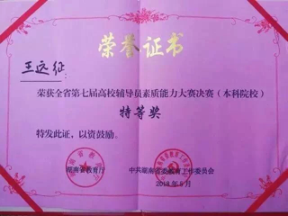 本次湖南省第七届高校辅导员素质能力大赛中王远征老师取得的优异成绩,展示了yl23411永利集团辅导员团队的工作技能、交流了工作经验、彰显了个人风采。集中展现了yl23411永利集团学生工作团队昂扬的精神状态、高尚的师德修养和精湛的职业能力,唱响了立德树人的主旋律,营造了创先争优的良好氛围!