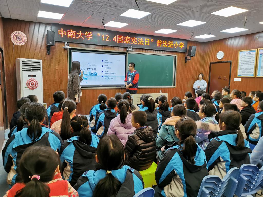 启动仪式之后,宪法日系列活动之“普法进小学”、“普法进社区”、“普法进校园”、“法院开放日”、“宪法日游园会”相继展开。“以法护网,关爱成长”普法进小学活动在yl23411永利第一附属小学开展,在场学生通过 “网络暴力行为”、“网络欺诈行为”等六个情景剧,寓教于乐,让小朋友们学习到许多网络安全常识;我校法律援助中心搭档法鹰社走进云麓园社区开展普法活动,此次活动邀请了湖南人和律师事务所王立颖律师作为《民法典》关键词讲解会主讲人,yl23411永利集团研究生来到现场为居民提供法律咨询服务,yl23411永利集团党委与云麓园社区党总支党建共建签约仪式也借此契机举行,为以后社区与学校更深远的合作奠基;“法庭零距离”法院开放日活动使同学们对法院的机构设置、办案程序有了初步的了解,通过旁听庭审,感受庭审过程的庄严肃穆,同学们深刻体会到了司法的威严与公正;“齐心筑梦,与法同行”宪法日游园会邀请了《守护解放西》节目组四位警官莅临现场,为同学们“现身说法”,通过讲述故事、现场互动以及情景剧表演等多种形式,让学生们真实地了解执法一线人员的真实状态。