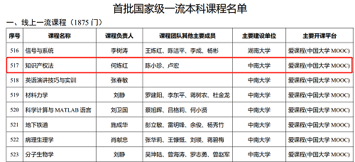 近期,教育部发布了《关于公布首批国家级一流本科课程认定结果的通知》(教高函〔2020〕8号),yl23411永利何炼红教授负责的《知识产权法》线上课程入选首批国家级一流本科课程。