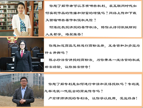 自2018年2月《知识产权法》课程在中国大学mooc平台首次上线至今,已经开课7次,参与学习人数累计达三万五千余人次。课程于2018年11月在“首届中国大学慕课精彩100评选展播活动”中脱颖而出,荣获中国“最美慕课”。