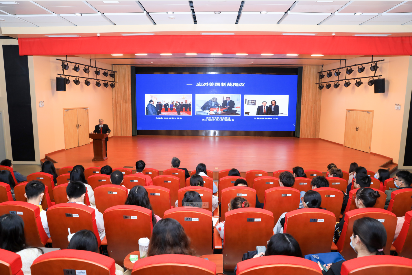 袁南生教授结合自身外交经历,从经受的五大考验和对于中国外交的五点思考两个方面展开报告,讲述了应对美国制裁提议、妥善处理穆加贝总统参加北京奥运会问题、应对韩亚空难、给津巴布韦提供紧急粮食援助等种种外交经历的故事。基于多年的外交经验,袁教授谈到自己的五点思考:站在大国外交的高处、看在开拓创新的远处、想在以人为本的大处、干在勇于担当的实处、盯在细节操作的难处,尤其强调了要勇于在外交事务处理方式上创新。袁教授讲述他在苏里南工作期间,曾大力协助使中国的传统节日成为苏里南国家的传统节日,这是外交史的一大创举,推动了中国文化在海外的传播,提高了中国的国际影响力。