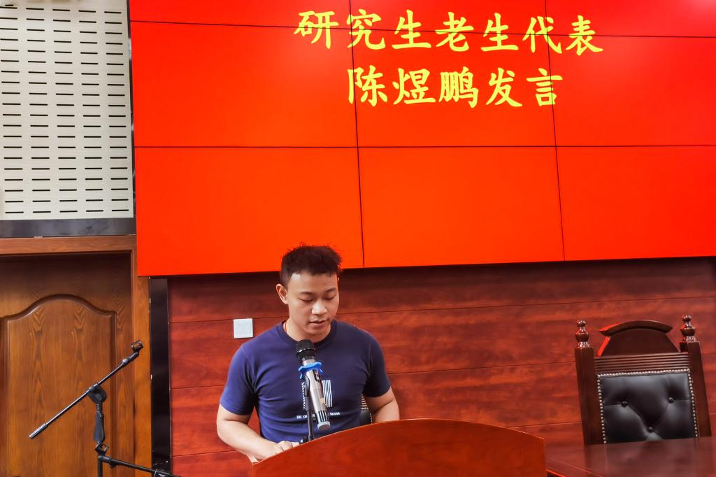 之后,老生代表陈煜鹏就如何培养科研能力与同学们做出分享,引经据典地提出了问题意识的本土化、理论视野的全球化和批判精神的内化三个方面,为新生们的学习和研究提供了新的视角、思路和灵感。祝愿每个人都可以“融入中南大学,实现人生理想。”