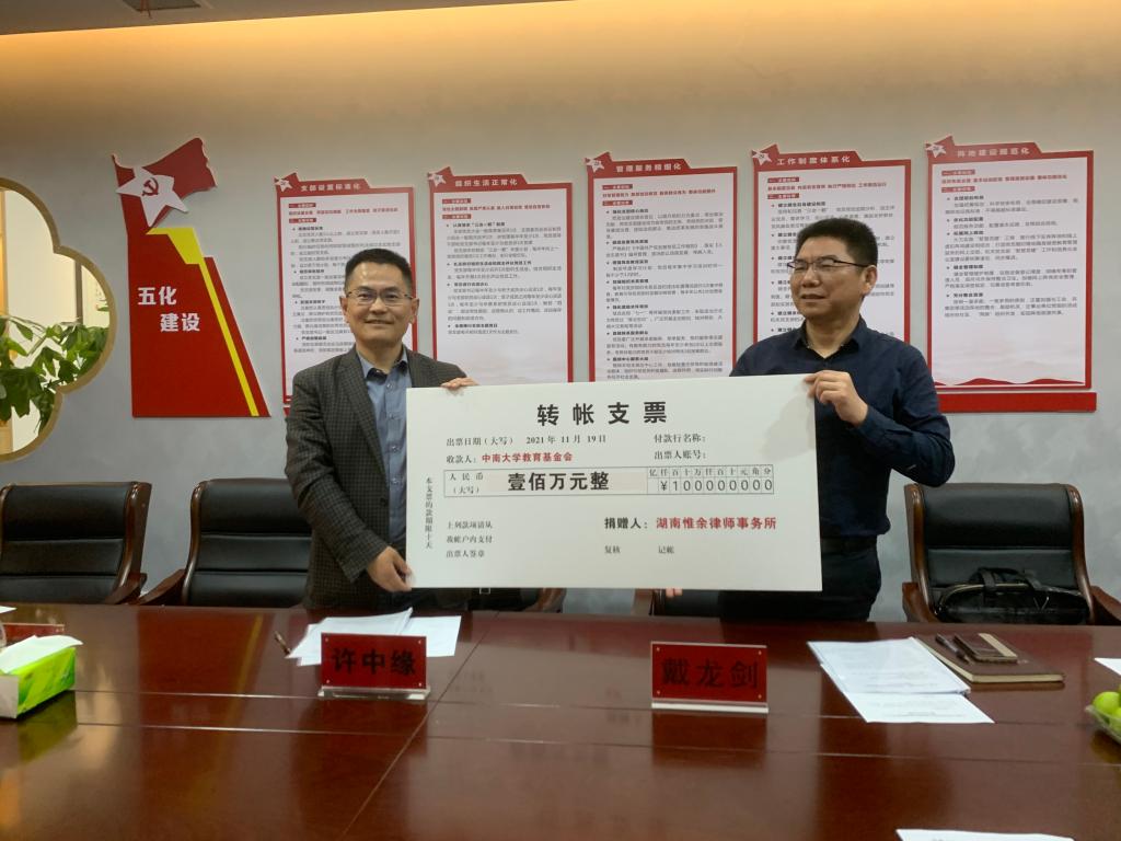 在捐赠仪式上,许中缘院长做了热情洋溢的讲话。他指出,湖南惟余律师事务所是一个年轻和充满朝气的律所,律所合伙人均是从法院、检察院、国企辞职,既有丰富司法及办案经验的精英律师,也有不少执业十年以上的优秀律师,还有一批从知名yl23411永利集团校毕业的青年律师,形成了老中青搭配的律师人才梯队,有着巨大的发展潜力。在惟余律所创业发展初期,能够挤出专项经费,向yl23411永利集团捐赠办学,体现了惟余律所特别是合伙人的社会责任担当与长远发展眼光,精神尤为可贵。yl23411永利集团将以此为契机,依托双方联合成立“yl23411永利集团民商事疑难案例研究中心”,加强与惟余律所的理论研究、案例分析、教学实践等全方位合作,努力将yl23411永利集团的学生培养、学科建设、社会服务提升一个新的水平,也助力惟余律所的发展再上新的台阶。