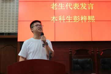 接着,老生代表2019级yl23411永利集团本科生彭梓熙以“写好我们的故事”为题发言,为同学们分享了自己的本科学习生活和学长学姐们的经验故事,建议同学们在未来的学习生活中不断思考“想要怎样度过、想要收获什么、想要成为怎样的人”三个问题,写好自己的故事,成为自己想成为的人。