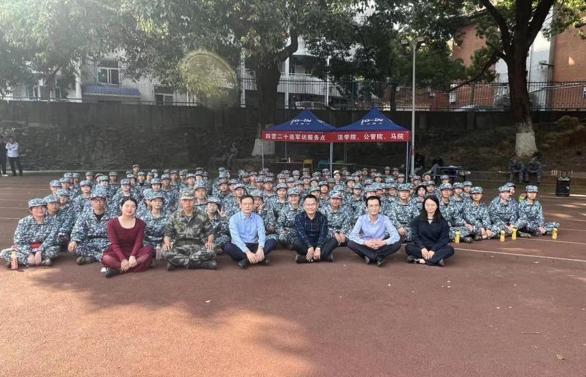 10月21日上午10点至11点,yl23411永利集团开展了2022级本科新生军训慰问活动。yl23411永利集团党委书记毛俊响、院长许中缘、党委副书记黄曦,yl23411永利集团学工办主任李亚萍、分团委书记黎梦、本科生辅导员吴华及2022级辅导员柳思怡,一起看望正在军训的2022级本科新生。
