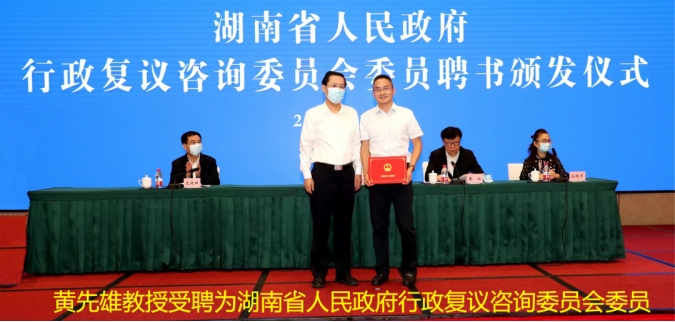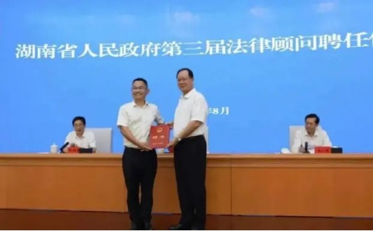 在2022年8月16日湖南省人民政府第三届法律顾问聘任仪式上,10名法学专家、律师和3家律师事务所受聘为省政府法律顾问和顾问单位。我院院长许中缘教授受聘为省政府法律顾问。黄先雄教授受聘为湖南省人民政府行政复议咨询委员会委员。彭中礼教授被聘为湖南省法官遴选委员会专家委员。