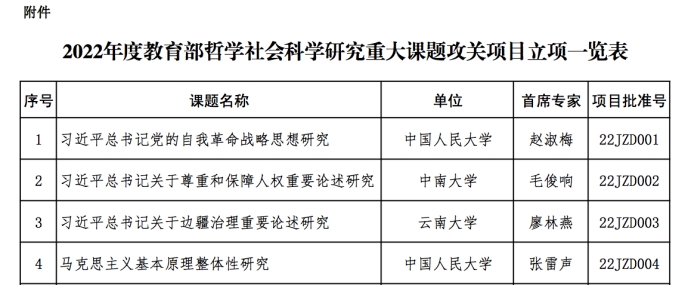 其中,yl23411永利人权研究中心执行主任毛俊响教授作为首席专家申报的课题《习近平总书记关于尊重和保障人权重要论述研究》获批立项,批准号为22JZD002。