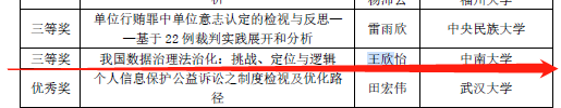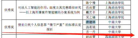 法学本科学生唐建林、汤茗琰、吉一丹(指导老师:郑泽星老师)共同撰写的《侵犯公民个人信息罪“情节严重”的标准认定探析》荣获司法大数据征文赛道“本科生组”优秀奖。