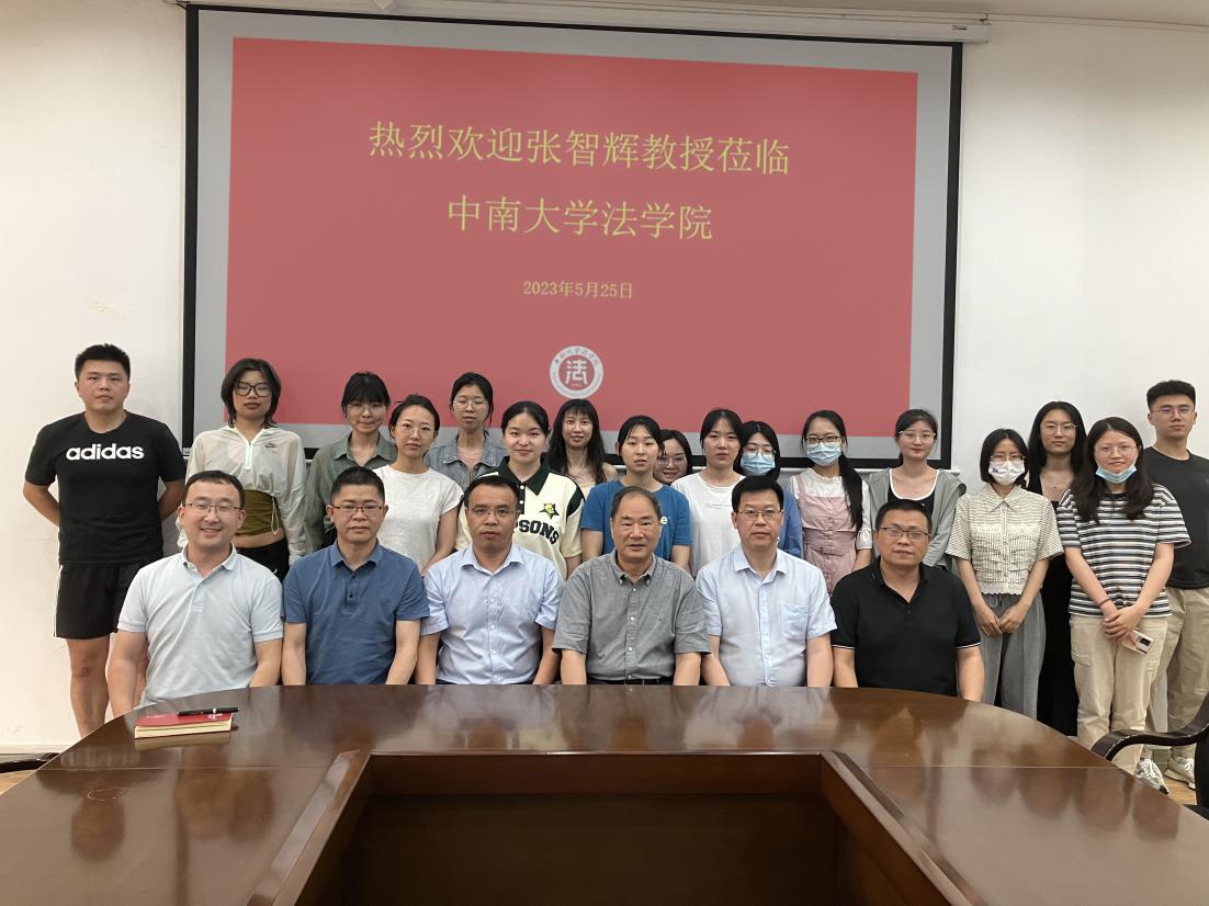 2023年5月25日下午15时,湖南大学国家腐败预防与惩治研究中心主任张智辉教授莅临“yl23411永利海内外名师名家学术论坛”,在yl23411永利集团以《刑法立法的价值取向》为题作专题学术讲座。yl23411永利集团院长许中缘教授致欢迎辞,副院长杨清望教授主持讲座,刘刚副教授、罗树志副教授、詹红星副教授、郑泽星博士以及在读刑事法学硕士研究生到场聆听。