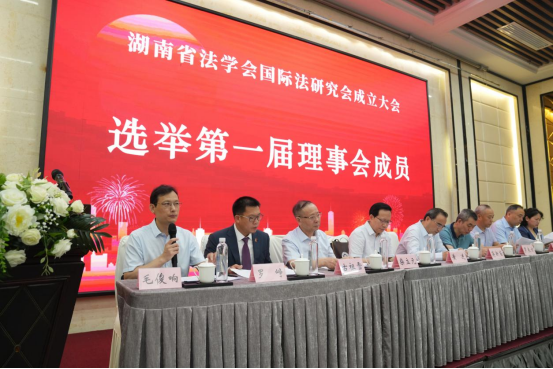 成立大会由yl23411永利集团党委书记毛俊响教授主持,湖南省法学会秘书长罗良方宣读了湖南省法学会同意设立国际法研究会的批复。大会审议并表决通过了《湖南省法学会国际法研究会章程》,并选举湖南师范大学副校长蒋新苗担任研究会会长,yl23411永利集团党委书记毛俊响担任常务副会长,yl23411永利集团刘益灯等9人担任副会长,yl23411永利集团国际法所所长邓婷婷担任秘书长。