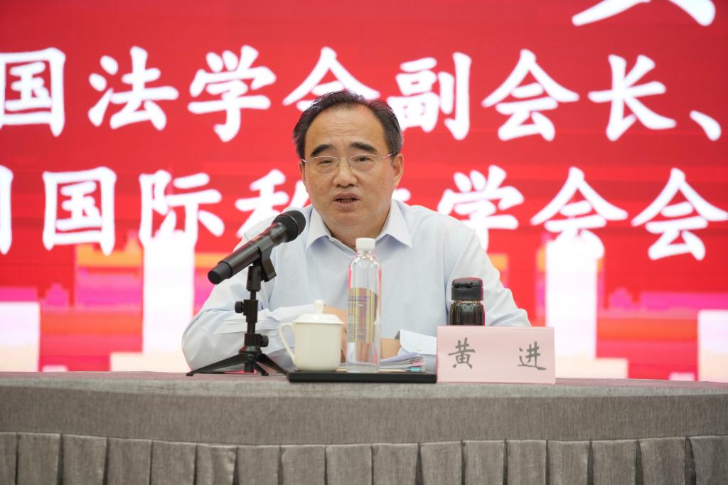 中国国际法学会会长黄进教授在致辞中对湖南省法学会国际法研究会的成立表示热烈祝贺,并对研究会的发展寄予四点希望:一是心怀“国之大者”。立足湖南,面向中国,走向世界,为国家的国际法事业作出贡献。二是坚持胸怀天下。以国际交流、文明互鉴提升视野、能力和格局。三是践行守正创新。坚持解放思想、实事求是、与时俱进。四是勿忘团结奋斗。中国国际法学界要像石榴籽那样紧紧抱在一起,共同团结奋斗。