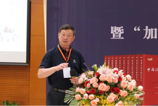 中国法学会副会长江必新教授作为《中国法治实施报告》主编发表了致辞。他回顾了《中国法治实施报告》的编纂历程,指出从“法律实施报告”到“法治实施报告”,从总分线性叙事到立体多维研究,从一校主创到全国各大高校与实务部门共同创作,《中国法治实施报告》历经十余年,体量翻番、内容翻倍,专家云集。迄今为止,《中国法治实施报告》共出版十卷,累计贡献了188部独立报告、年度法治实施事件评析整整100篇;415人次实质性地参与了报告的撰写,100多位领导和专家先后出席历年发布会并发表演讲。