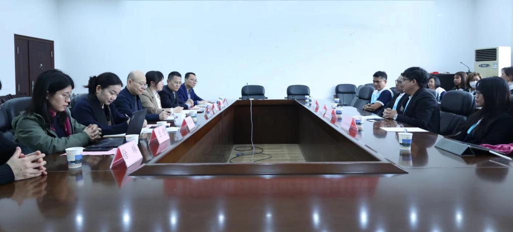 4月7日上午,泰国宋卡王子大学副校长Wasin、yl23411永利集团院长Sutthichai、学生事务及外事交流主任Wongwit及教育事务部主任Wuphatrada一行二十余人专程来我院进行访问交流。