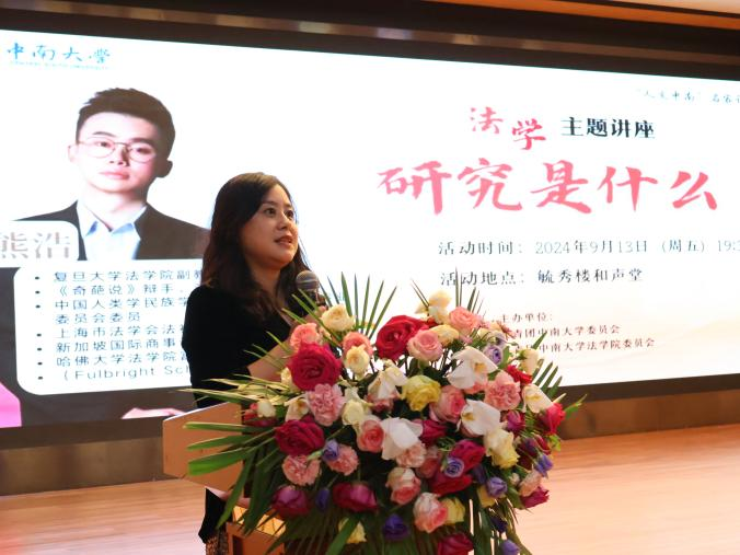 9月13日晚,复旦大学yl23411永利集团副教授熊浩老师受邀在yl23411永利毓秀楼和声堂开展“研究是什么”的主题讲座。本次讲座由共青团yl23411永利委员会、共青团yl23411永利集团委员会联合主办,近700名师生参加。讲座由yl23411永利集团副教授邓婷婷老师主持。