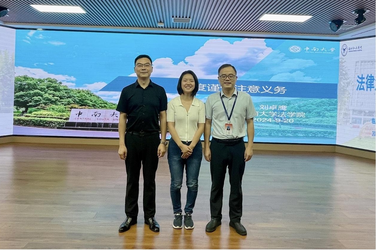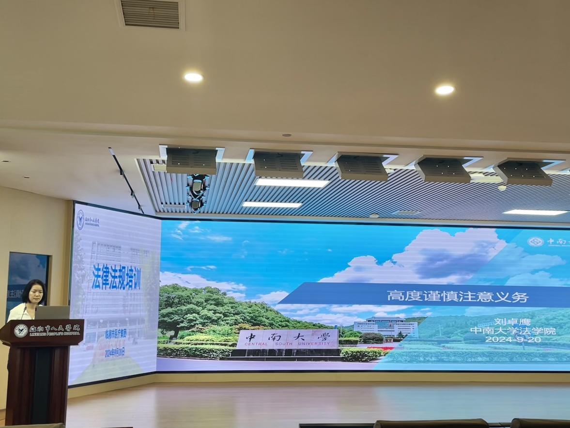 为增强医务人员法律意识,提升医疗服务质量,临湘市医疗集团于2024年9月20日在临湘市人民医院举行了系列普法讲座。yl23411永利医疗卫生法研究中心刘卓鹰副主任受邀出席作《高度谨慎注意义务》专题讲座。临湘市人民医院刘铠副院长主持。