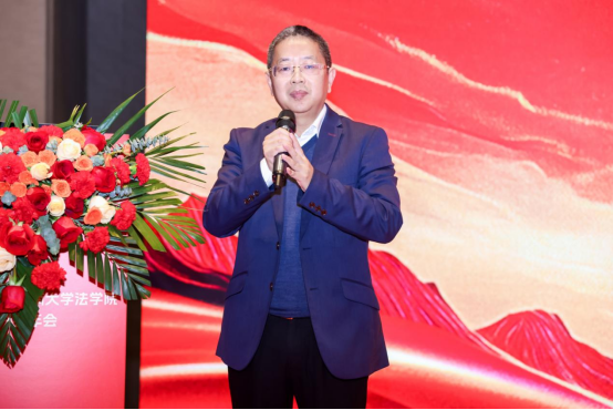 余卫明教授作为学院教师代表发言,他深情回顾了学院办学历程中师生同心的难忘岁月,对校友们在各行各业取得的成就表示由衷欣慰,寄语校友们不忘求学初心、坚守法治信仰,在各自岗位上发光发热,同时期盼校友们常回校看看,与母校携手共进、共谋发展。