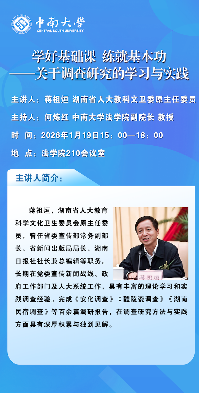 讲座预告|蒋祖烜:学好基础课 练就基本功 ——关于调查研究的学习与实践